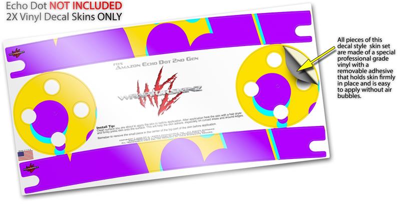 Skin Wrap Decal Set 2 Pack for Amazon Echo Dot 2 - Drip Purple Yellow Teal (2nd Generation ONLY - Echo NOT INCLUDED)