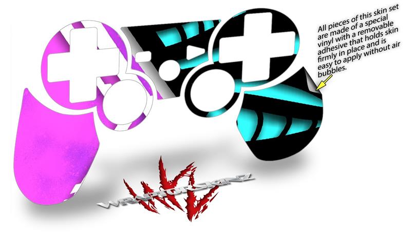 Sony PS3 Controller Decal Style Skin - Black Waves Neon Teal Hot Pink (CONTROLLER NOT INCLUDED)