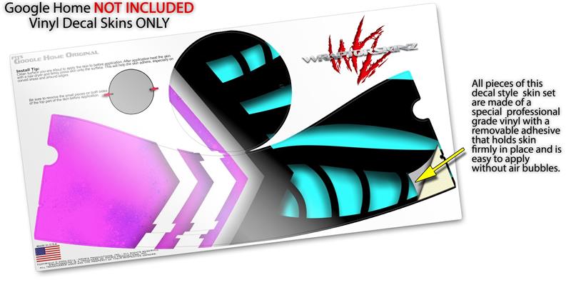 Decal Style Skin Wrap for Google Home Original - Black Waves Neon Teal Hot Pink (GOOGLE HOME NOT INCLUDED)