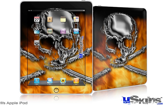 iPad Skin - Chrome Skull on Fire
