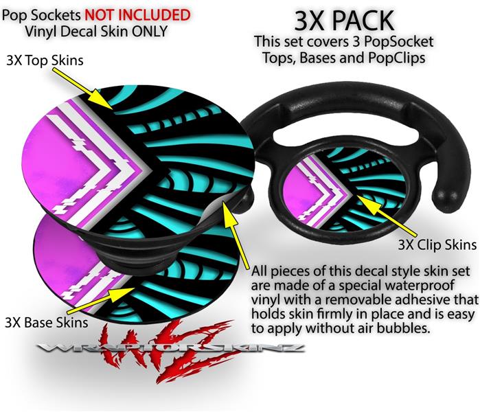 Decal Style Vinyl Skin Wrap 3 Pack for PopSockets Black Waves Neon Teal Hot Pink (POPSOCKET NOT INCLUDED)