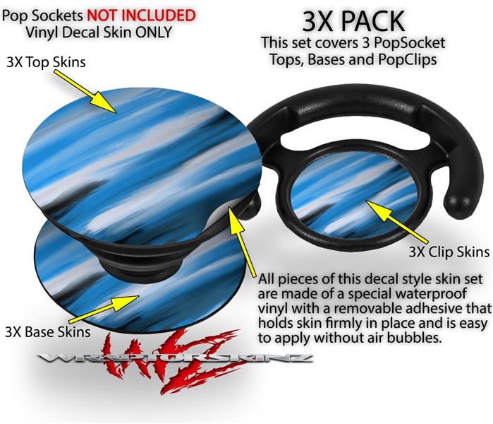 Decal Style Vinyl Skin Wrap 3 Pack for PopSockets Paint Blend Blue (POPSOCKET NOT INCLUDED)