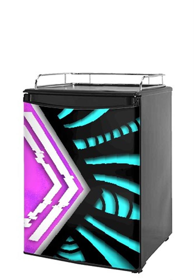 Kegerator Skin - Black Waves Neon Teal Hot Pink (fits medium sized dorm fridge and kegerators)
