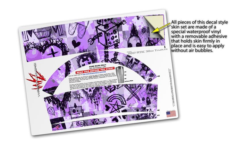WraptorSkinz Skin Wrap compatible with 2017 and newer RTIC Tumblers 30oz Scene Kid Sketches Purple (TUMBLER NOT INCLUDED)