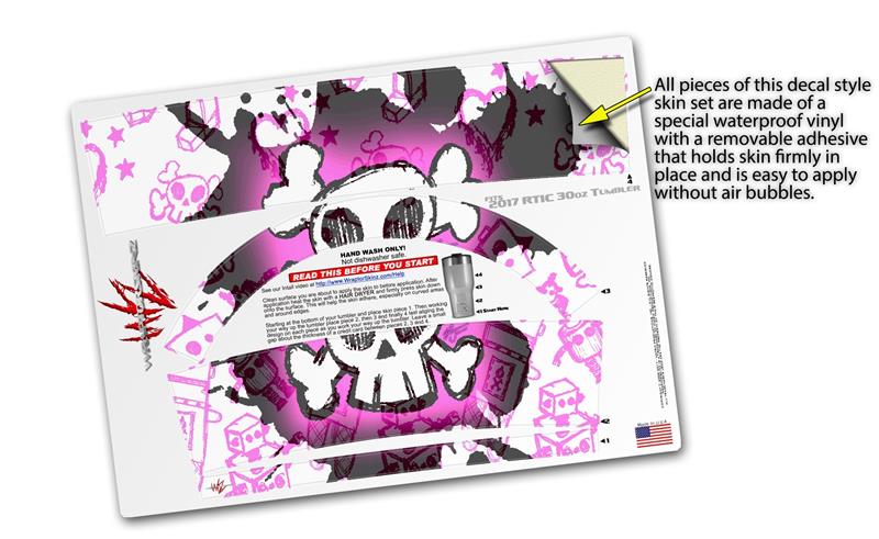 WraptorSkinz Skin Wrap compatible with 2017 and newer RTIC Tumblers 30oz Cartoon Skull Pink (TUMBLER NOT INCLUDED)