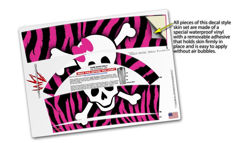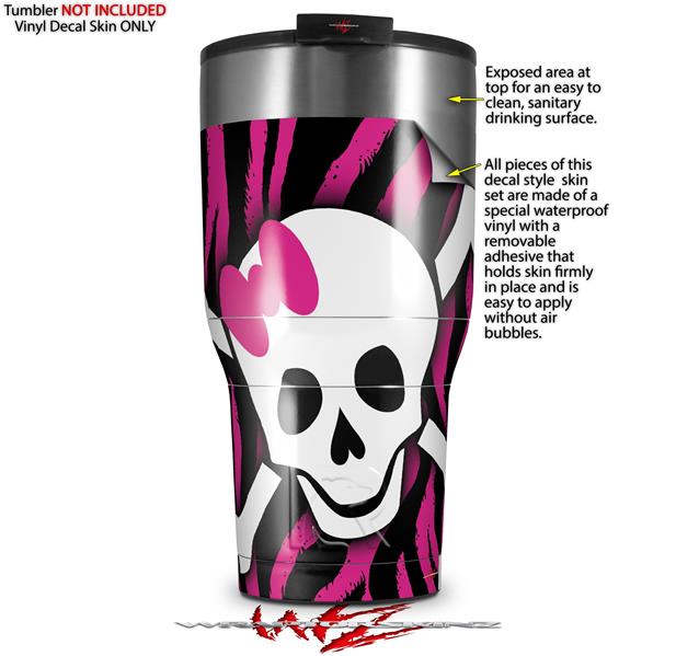 WraptorSkinz Skin Wrap compatible with 2017 and newer RTIC Tumblers 30oz Pink Zebra Skull (TUMBLER NOT INCLUDED)