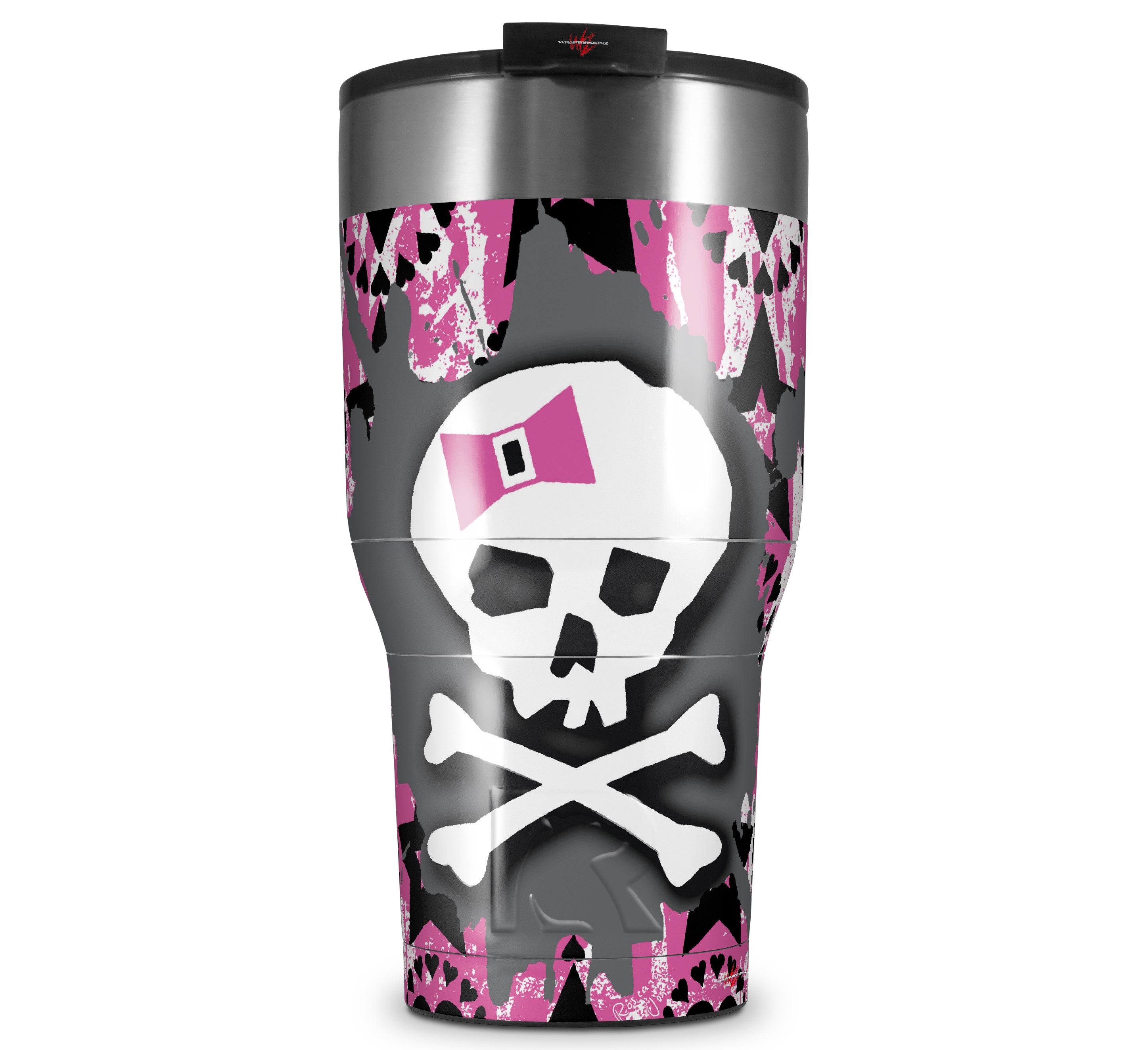 WraptorSkinz Skin Wrap compatible with 2017 and newer RTIC Tumblers 30oz Pink Bow Skull (TUMBLER NOT INCLUDED)