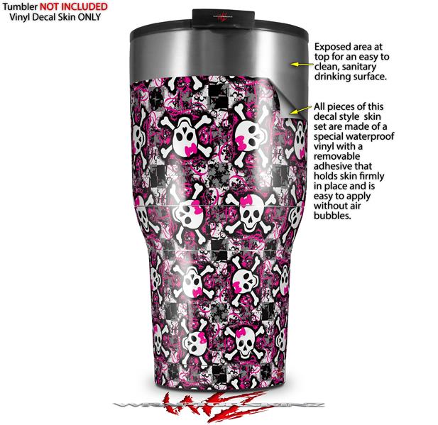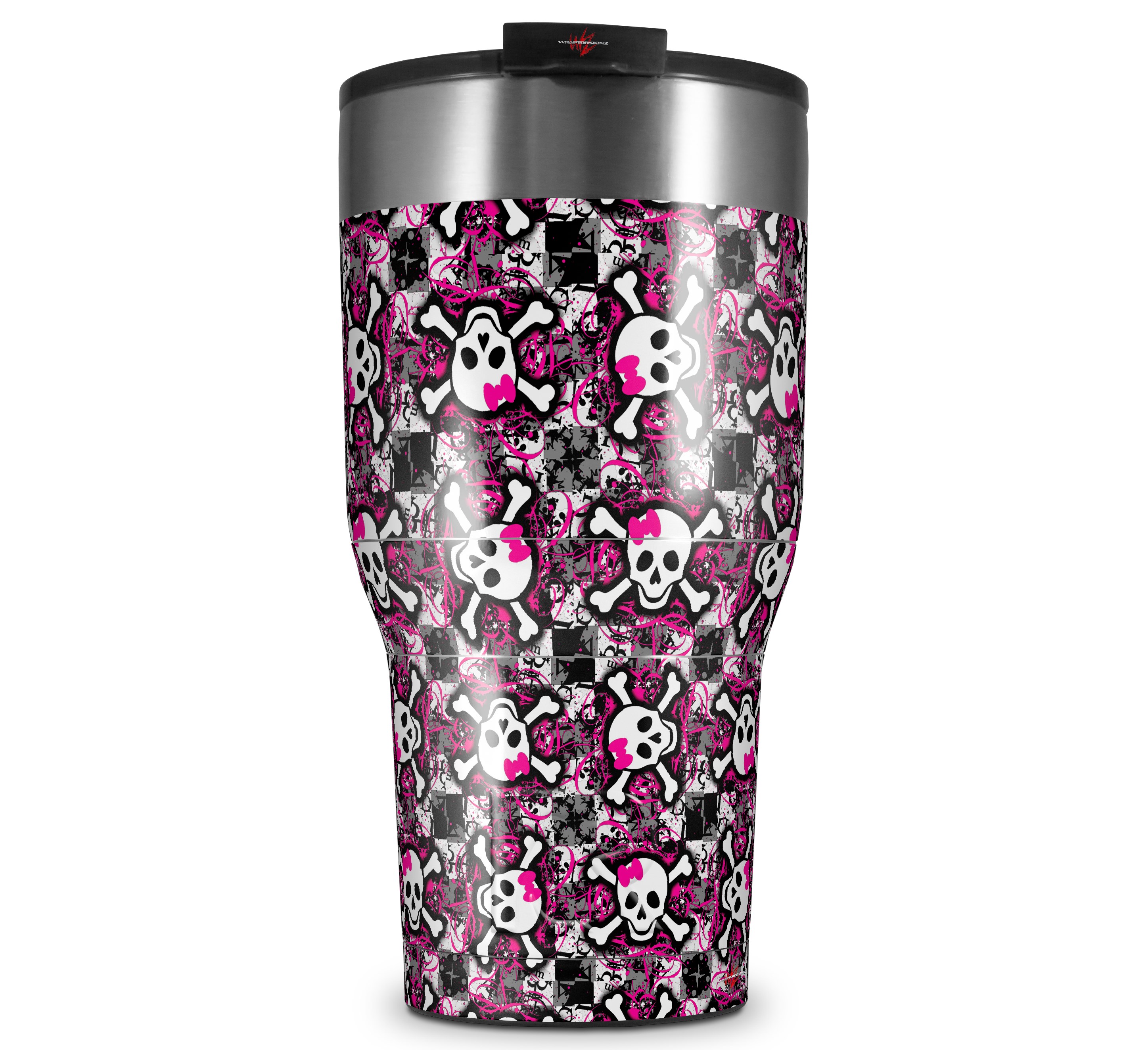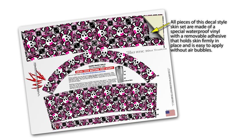 WraptorSkinz Skin Wrap compatible with 2017 and newer RTIC Tumblers 30oz Splatter Girly Skull Pink (TUMBLER NOT INCLUDED)