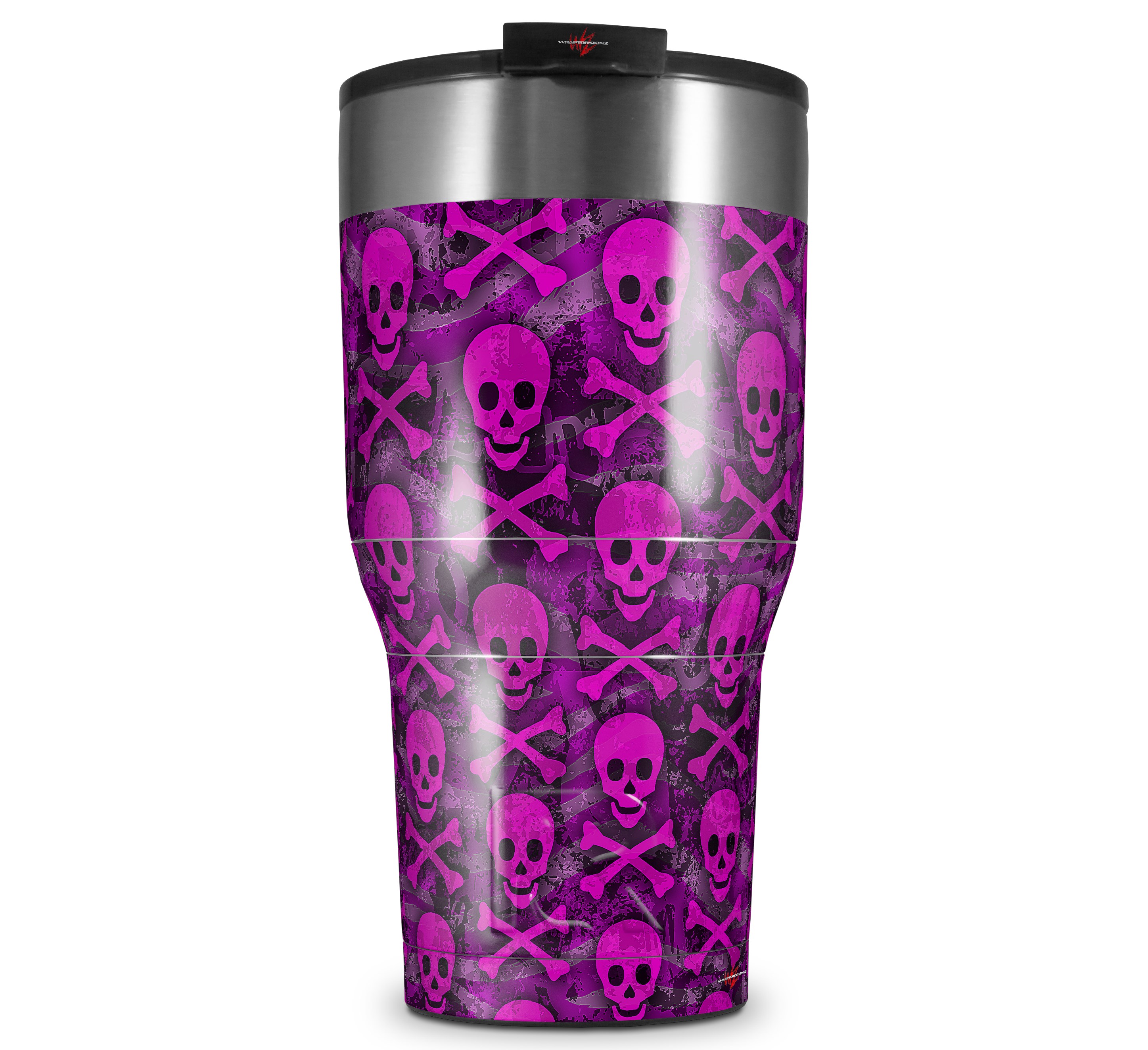 WraptorSkinz Skin Wrap compatible with 2017 and newer RTIC Tumblers 30oz Pink Skull Bones (TUMBLER NOT INCLUDED)