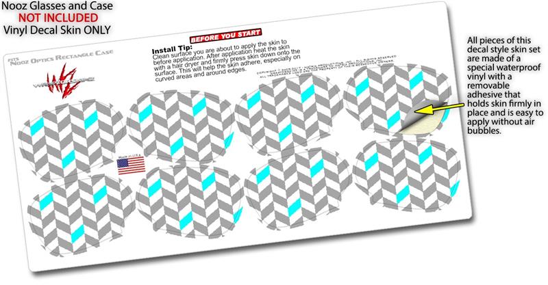 Decal Style Vinyl Skin Wrap 2 Pack for Nooz Glasses Rectangle Case Chevrons Gray And Aqua (NOOZ NOT INCLUDED) by WraptorSkinz