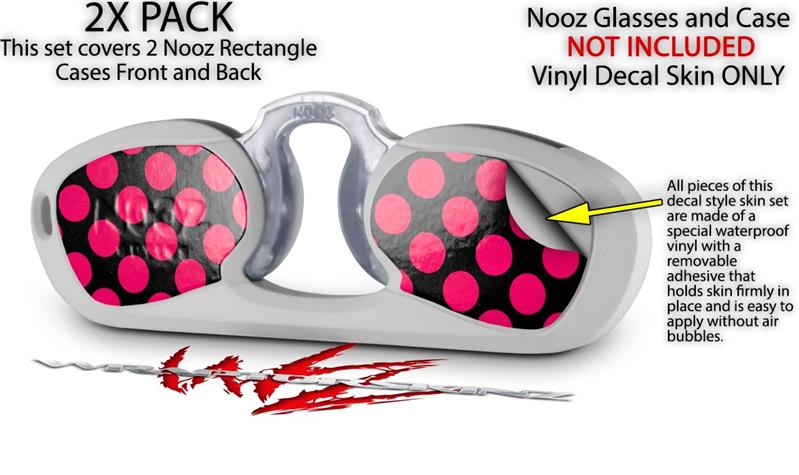 Decal Style Vinyl Skin Wrap 2 Pack for Nooz Glasses Rectangle Case Kearas Polka Dots Pink On Black (NOOZ NOT INCLUDED) by WraptorSkinz
