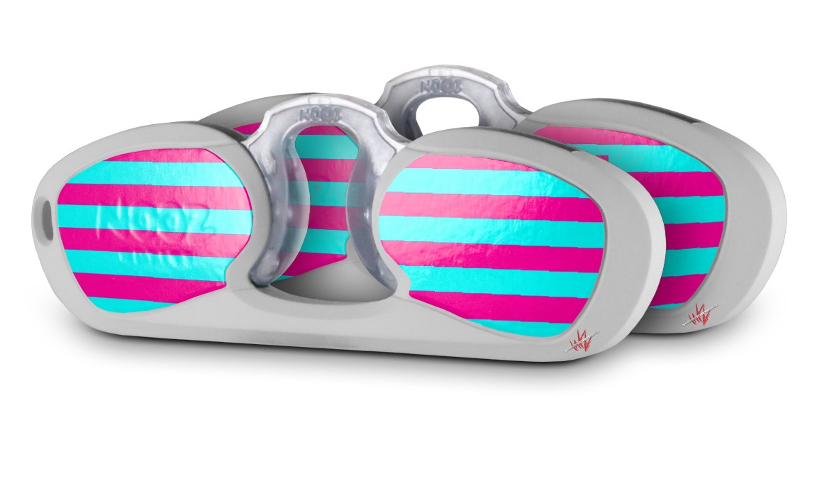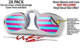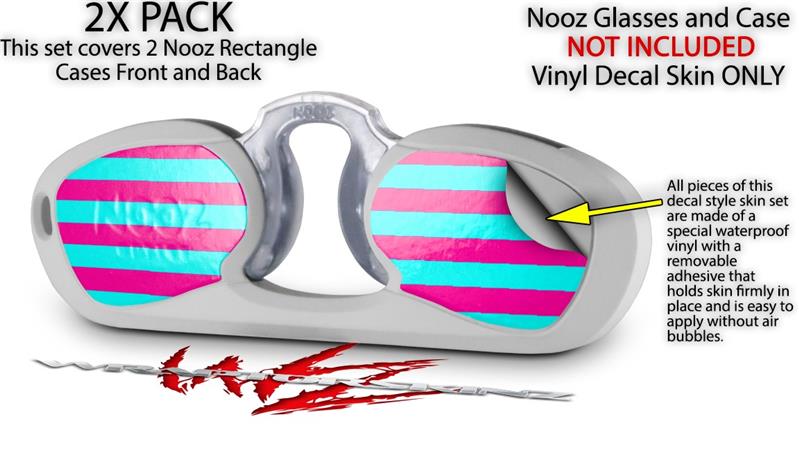 Decal Style Vinyl Skin Wrap 2 Pack for Nooz Glasses Rectangle Case Psycho Stripes Neon Teal and Hot Pink (NOOZ NOT INCLUDED) by WraptorSkinz