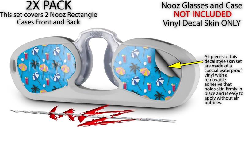 Decal Style Vinyl Skin Wrap 2 Pack for Nooz Glasses Rectangle Case Beach Party Umbrellas Blue Medium (NOOZ NOT INCLUDED) by WraptorSkinz
