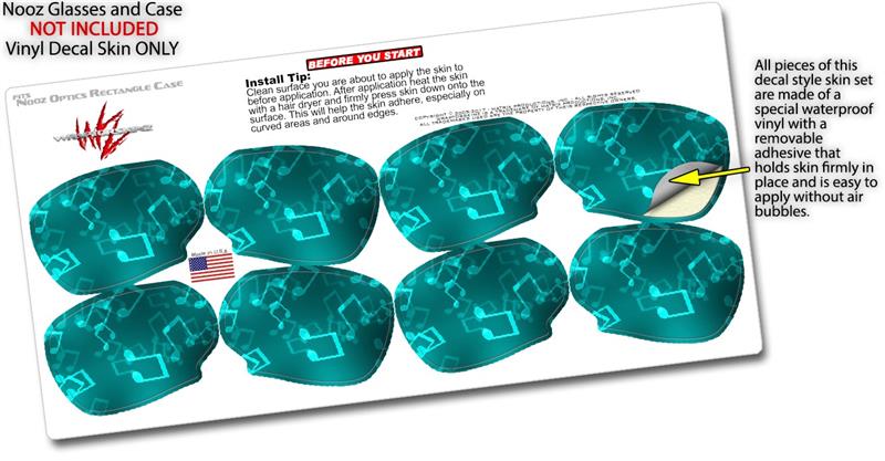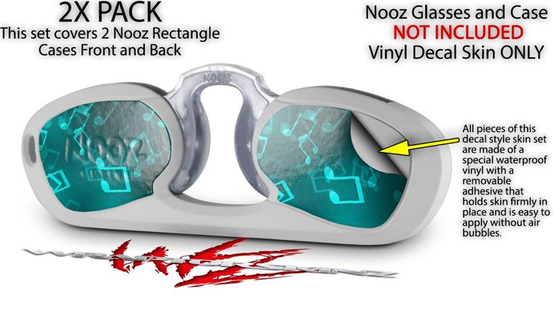 Decal Style Vinyl Skin Wrap 2 Pack for Nooz Glasses Rectangle Case Bokeh Music Neon Teal (NOOZ NOT INCLUDED) by WraptorSkinz