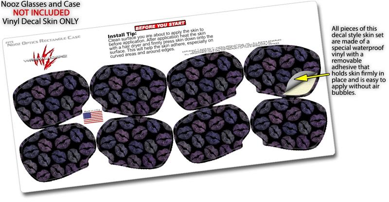 Decal Style Vinyl Skin Wrap 2 Pack for Nooz Glasses Rectangle Case Purple And Black Lips (NOOZ NOT INCLUDED) by WraptorSkinz