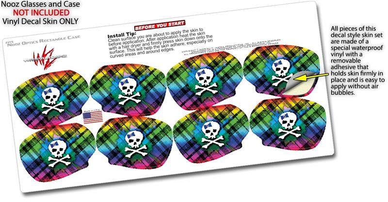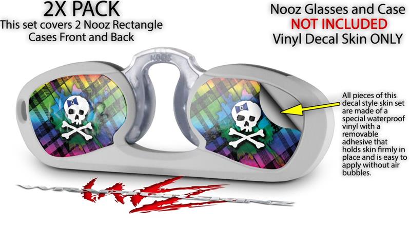 Decal Style Vinyl Skin Wrap 2 Pack for Nooz Glasses Rectangle Case Rainbow Plaid Skull (NOOZ NOT INCLUDED) by WraptorSkinz