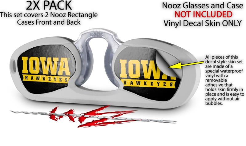 Decal Style Vinyl Skin Wrap 2 Pack for Nooz Glasses Rectangle Case Iowa Hawkeyes 03 Black on Gold (NOOZ NOT INCLUDED) by WraptorSkinz