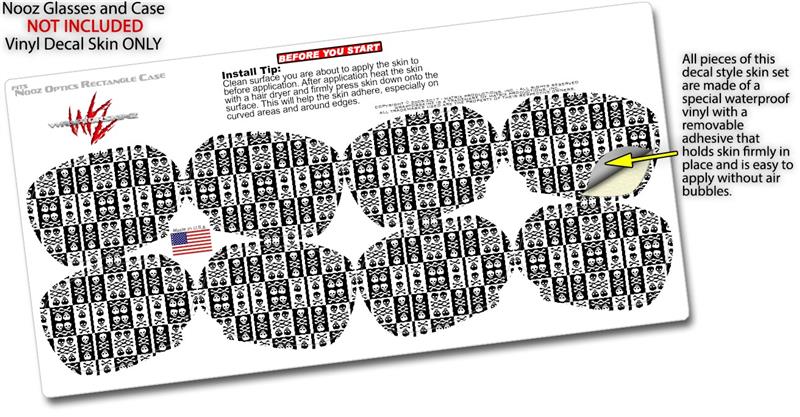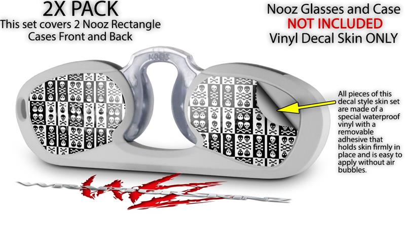 Decal Style Vinyl Skin Wrap 2 Pack for Nooz Glasses Rectangle Case Skull And Crossbones Pattern Bw (NOOZ NOT INCLUDED) by WraptorSkinz