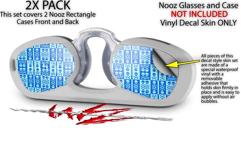 Decal Style Vinyl Skin Wrap 2 Pack for Nooz Glasses Rectangle Case Skull And Crossbones Pattern Blue (NOOZ NOT INCLUDED) by WraptorSkinz