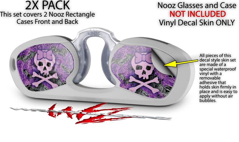 Decal Style Vinyl Skin Wrap 2 Pack for Nooz Glasses Rectangle Case Purple Girly Skull (NOOZ NOT INCLUDED) by WraptorSkinz