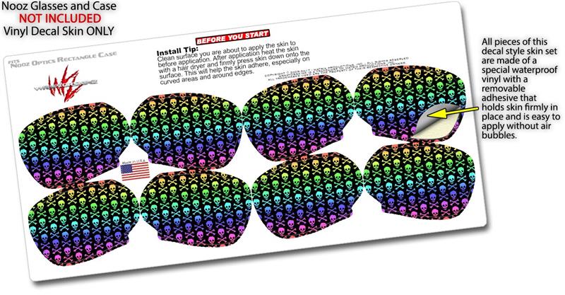 Decal Style Vinyl Skin Wrap 2 Pack for Nooz Glasses Rectangle Case Skull and Crossbones Rainbow (NOOZ NOT INCLUDED) by WraptorSkinz