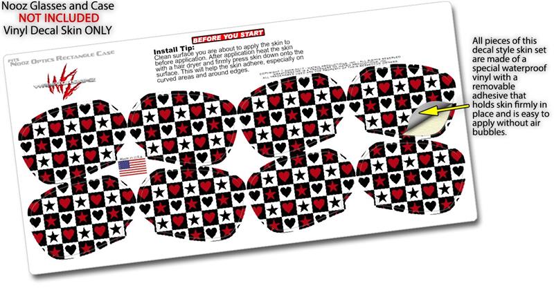 Decal Style Vinyl Skin Wrap 2 Pack for Nooz Glasses Rectangle Case Hearts and Stars Red (NOOZ NOT INCLUDED) by WraptorSkinz