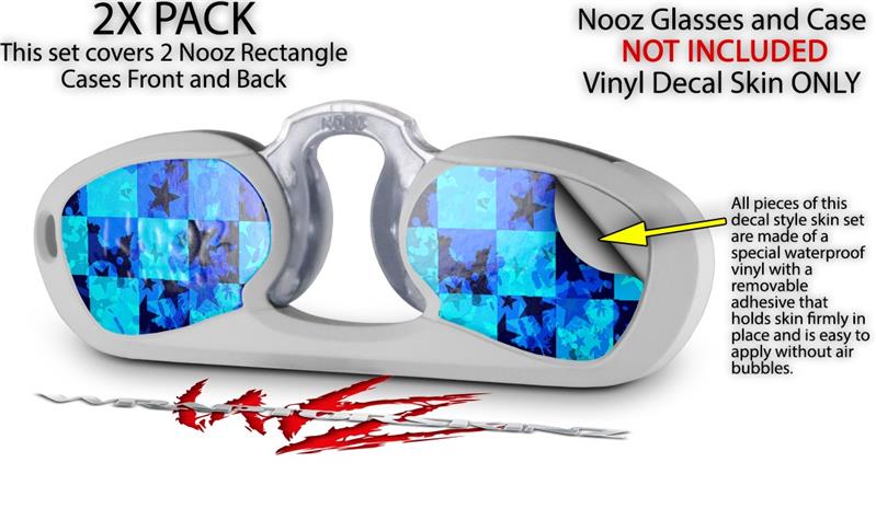Decal Style Vinyl Skin Wrap 2 Pack for Nooz Glasses Rectangle Case Blue Star Checkers (NOOZ NOT INCLUDED) by WraptorSkinz
