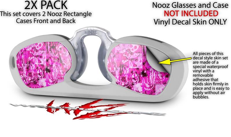 Decal Style Vinyl Skin Wrap 2 Pack for Nooz Glasses Rectangle Case Pink Plaid Graffiti (NOOZ NOT INCLUDED) by WraptorSkinz