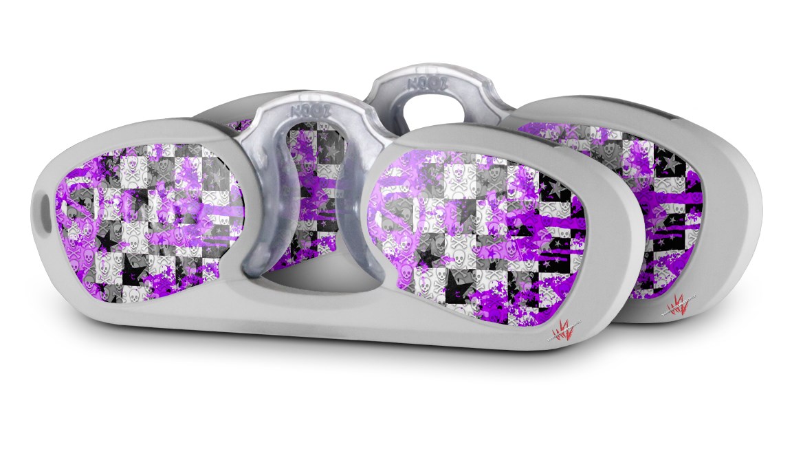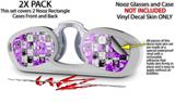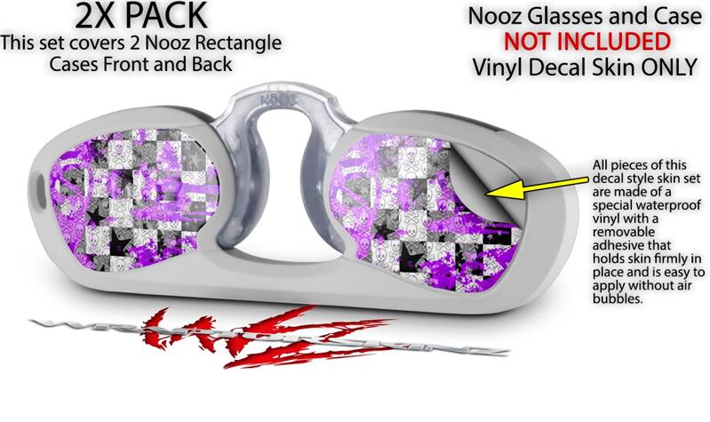 Decal Style Vinyl Skin Wrap 2 Pack for Nooz Glasses Rectangle Case Purple Checker Skull Splatter (NOOZ NOT INCLUDED) by WraptorSkinz