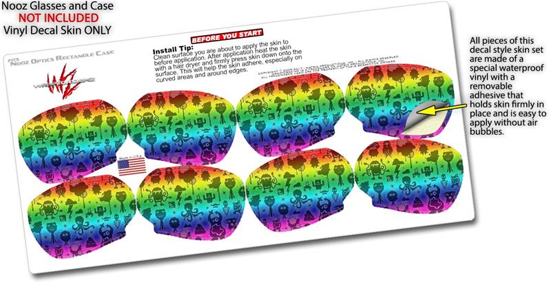 Decal Style Vinyl Skin Wrap 2 Pack for Nooz Glasses Rectangle Case Cute Rainbow Monsters (NOOZ NOT INCLUDED) by WraptorSkinz