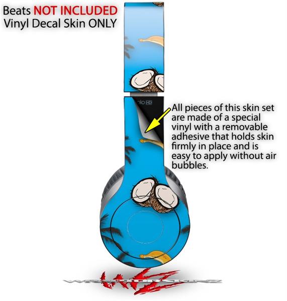 WraptorSkinz Skin Decal Wrap compatible with Beats Solo HD (Original) Coconuts Palm Trees and Bananas Blue Medium (HEADPHONES NOT INCLUDED)