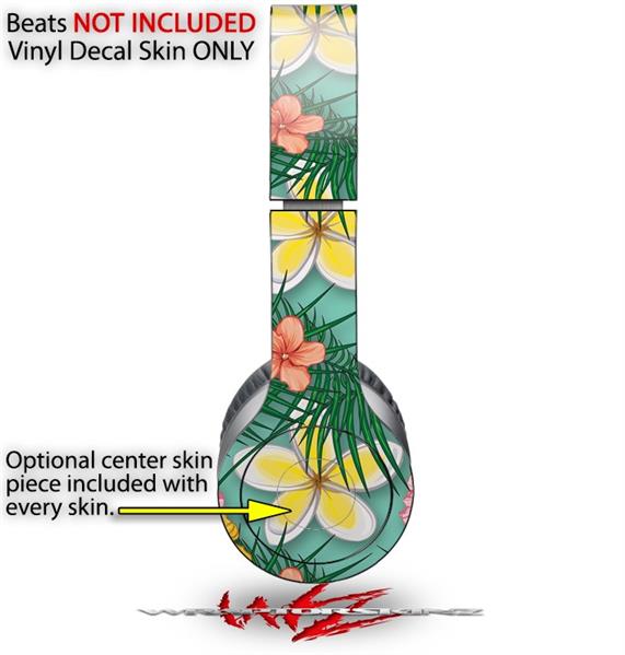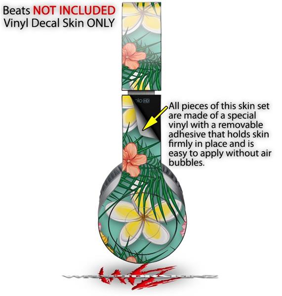 WraptorSkinz Skin Decal Wrap compatible with Beats Solo HD (Original) Beach Flowers 02 Seafoam Green (HEADPHONES NOT INCLUDED)