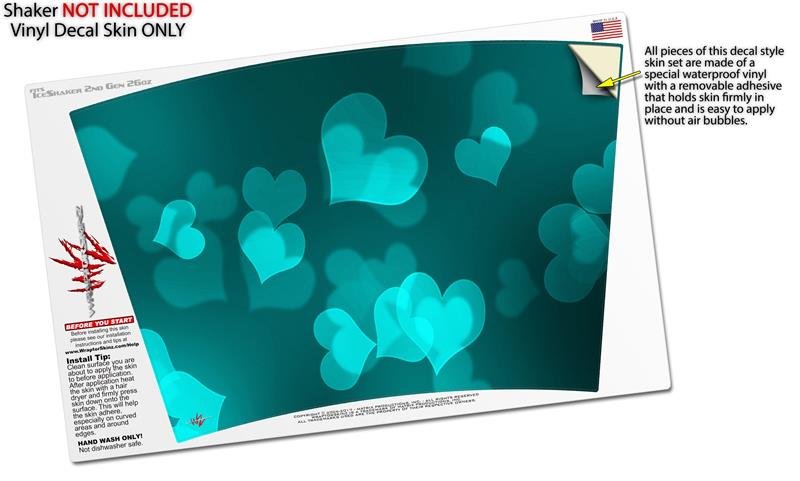 Skin Wrap Decal for IceShaker 2nd Gen 26oz Bokeh Hearts Neon Teal (SHAKER NOT INCLUDED)