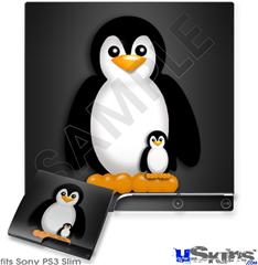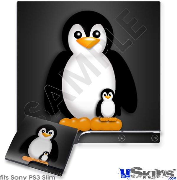 Decal Skin compatible with Sony PS3 Slim Penguins on Black