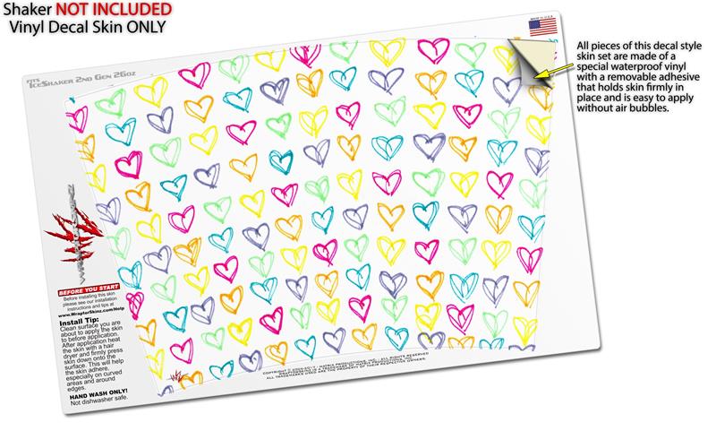Skin Wrap Decal for IceShaker 2nd Gen 26oz Kearas Hearts White (SHAKER NOT INCLUDED)