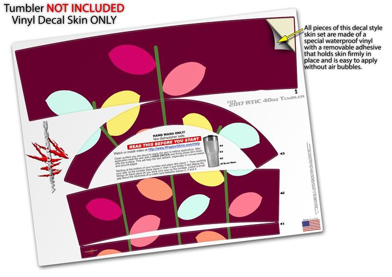 WraptorSkinz® skin wraps for 2017 RTIC Tumblers are printed using superb photo quality designs and vibrant colors printed with special fade resistant inks that last even in direct sun for years. WraptorSkinz® are a composite of two layers of commercial grade materials. The bottom layer is a soft, flexible vinyl with a special removable adhesive that is easily positioned, applied without air bubbles. Next we print the bottom layer with UV protected, fade resistant inks that deliver superb photo quality designs in vibrant colors. Finally we bond a professional grade laminate over the entire skin adding a glossy protective finish.