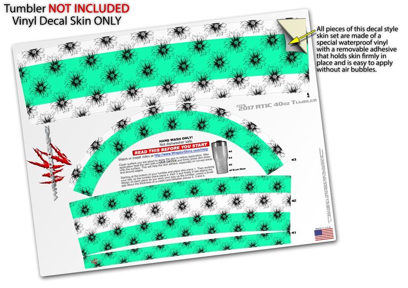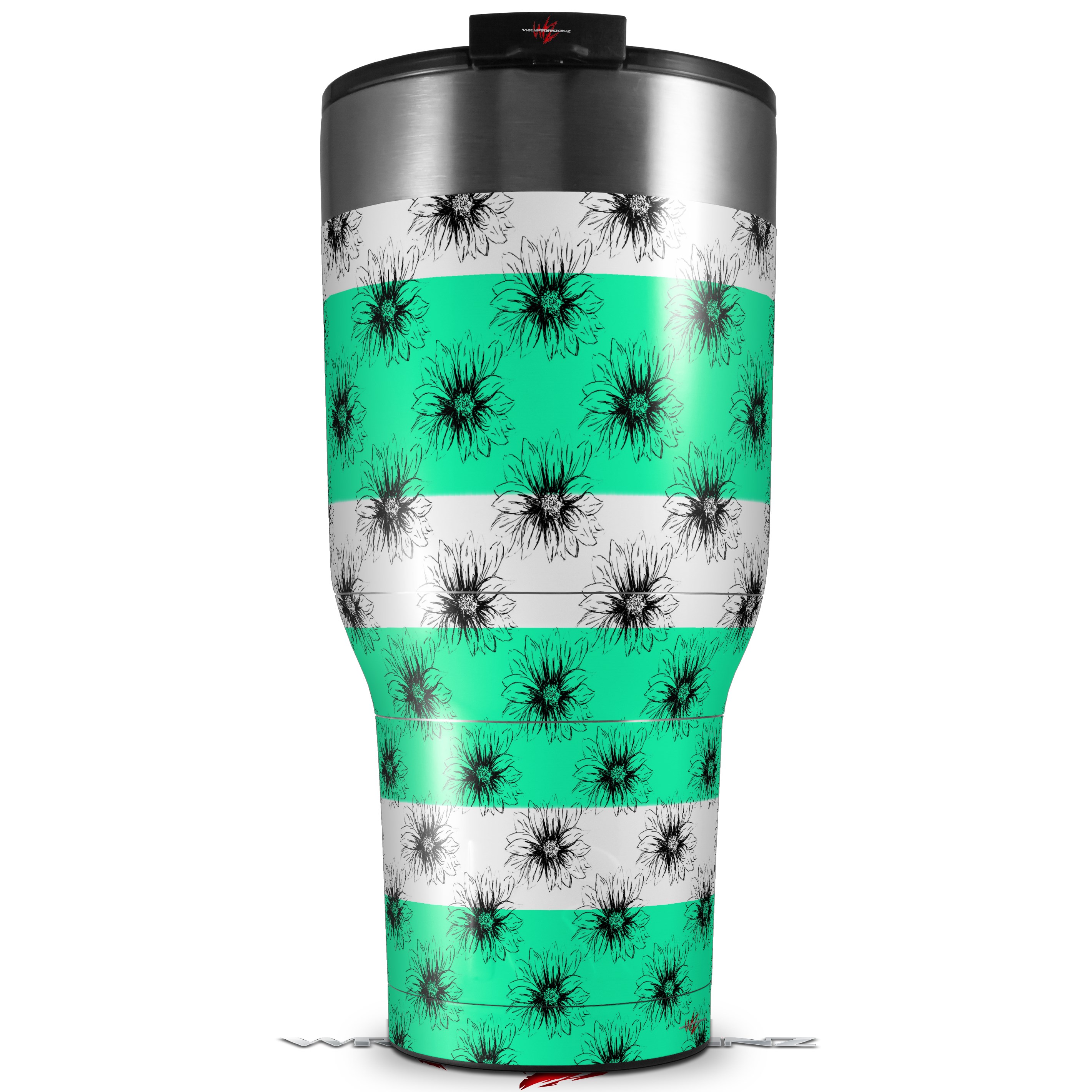 Skin Wrap Decal for 2017 RTIC Tumblers 40oz Kearas Daisies Stripe Sea Foam (TUMBLER NOT INCLUDED)