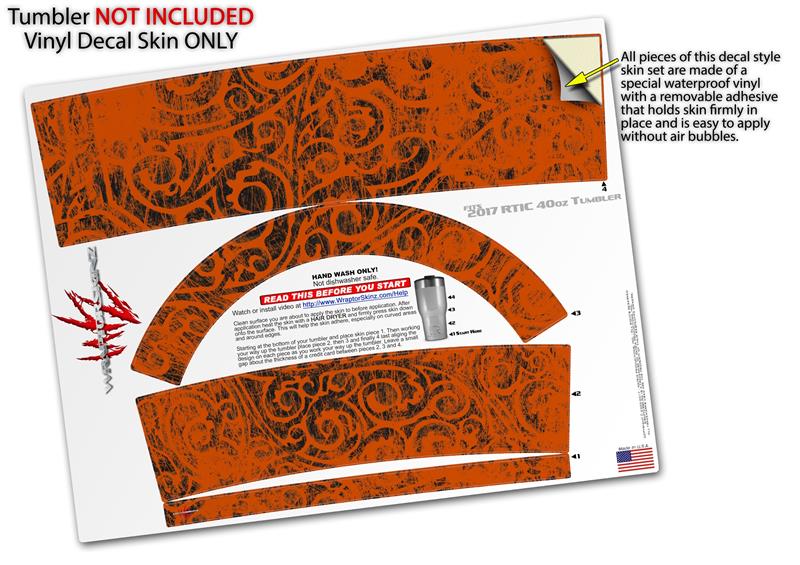 Skin Wrap Decal for 2017 RTIC Tumblers 40oz Folder Doodles Burnt Orange (TUMBLER NOT INCLUDED)