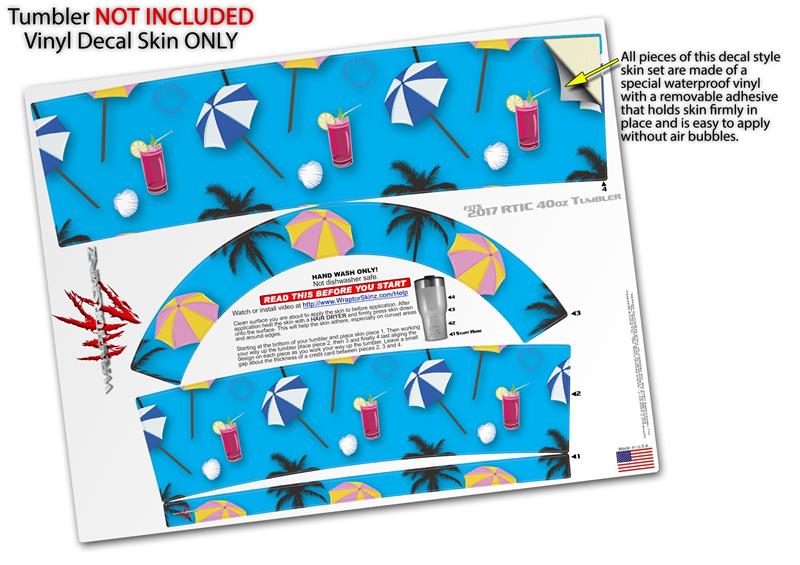 Skin Wrap Decal for 2017 RTIC Tumblers 40oz Beach Party Umbrellas Blue Medium (TUMBLER NOT INCLUDED)