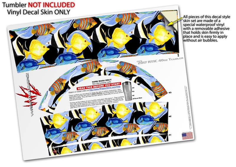 Skin Wrap Decal for 2017 RTIC Tumblers 40oz Tropical Fish 01 Black (TUMBLER NOT INCLUDED)