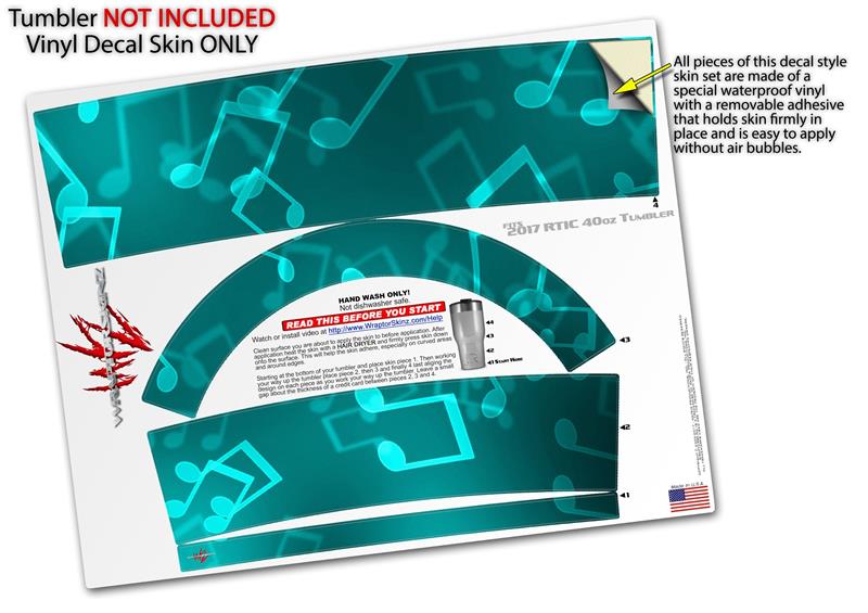 Skin Wrap Decal for 2017 RTIC Tumblers 40oz Bokeh Music Neon Teal (TUMBLER NOT INCLUDED)