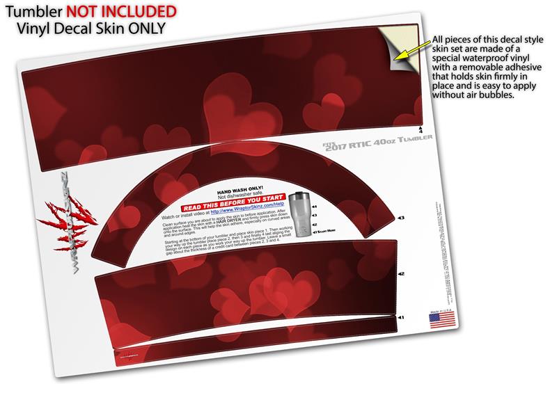 Skin Wrap Decal for 2017 RTIC Tumblers 40oz Bokeh Hearts Red (TUMBLER NOT INCLUDED)