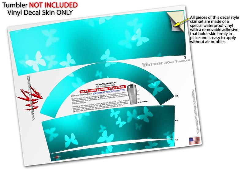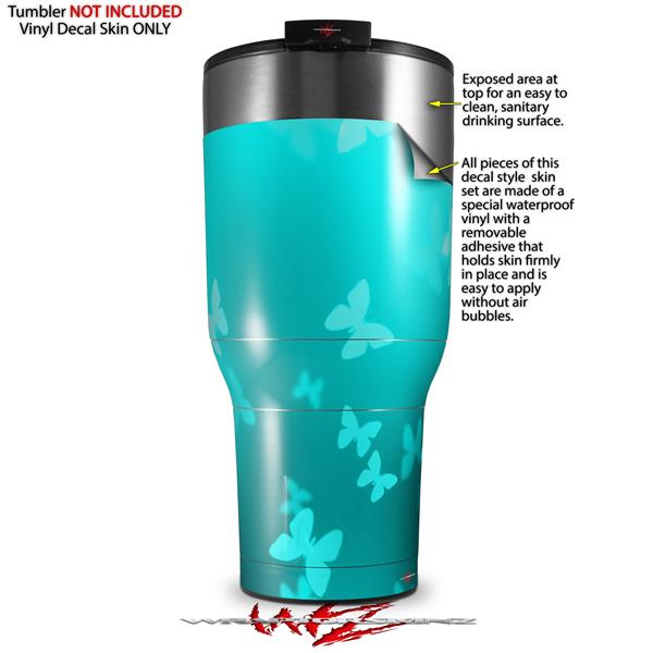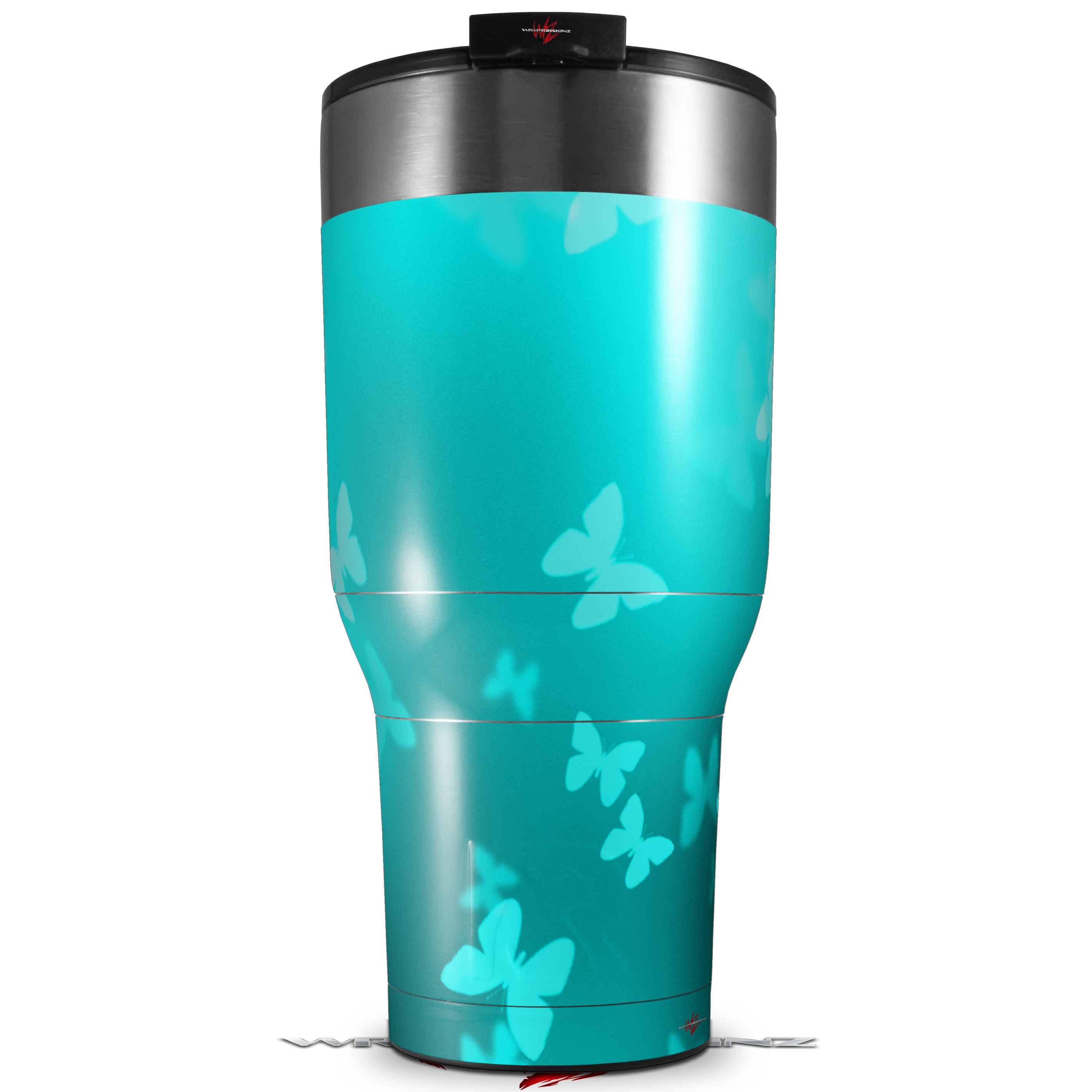 Skin Wrap Decal for 2017 RTIC Tumblers 40oz Bokeh Butterflies Neon Teal (TUMBLER NOT INCLUDED)