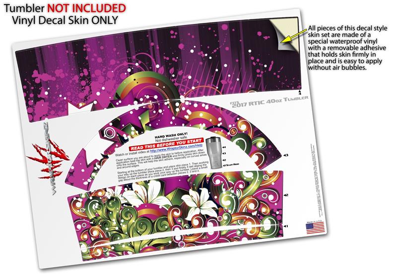 WraptorSkinz® skin wraps for 2017 RTIC Tumblers are printed using superb photo quality designs and vibrant colors printed with special fade resistant inks that last even in direct sun for years. WraptorSkinz® are a composite of two layers of commercial grade materials. The bottom layer is a soft, flexible vinyl with a special removable adhesive that is easily positioned, applied without air bubbles. Next we print the bottom layer with UV protected, fade resistant inks that deliver superb photo quality designs in vibrant colors. Finally we bond a professional grade laminate over the entire skin adding a glossy protective finish.