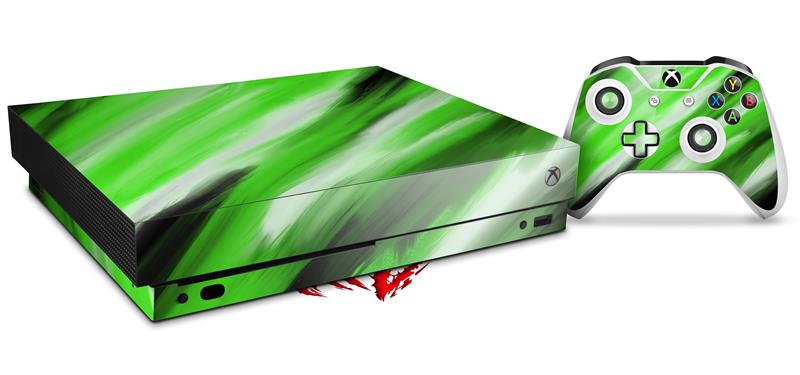 Skin Wrap for XBOX One X Console and Controller Paint Blend Green
