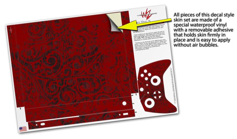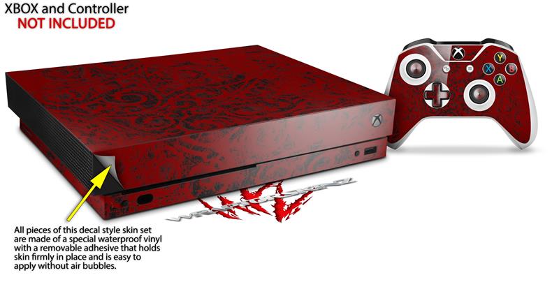 Skin Wrap for XBOX One X Console and Controller Folder Doodles Red Dark