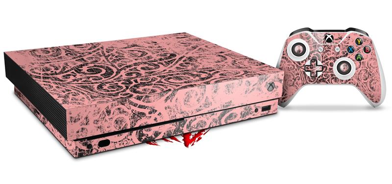 Skin Wrap for XBOX One X Console and Controller Folder Doodles Pink