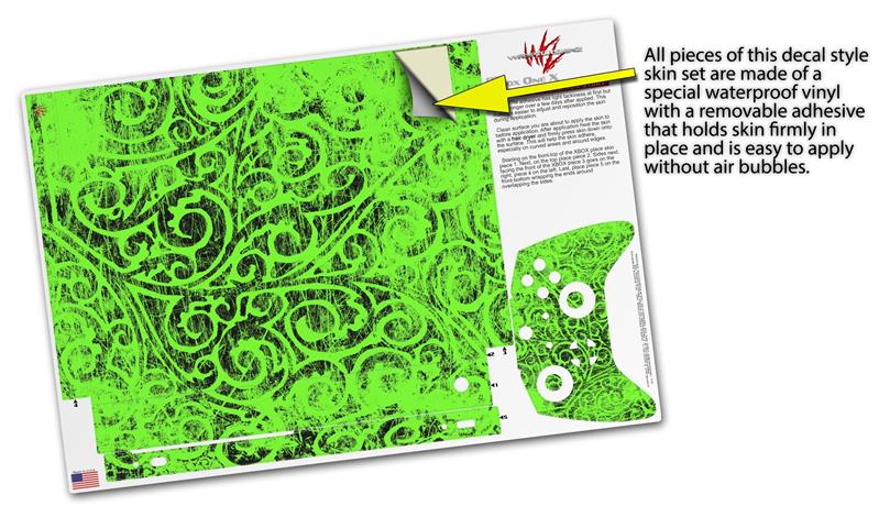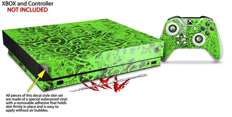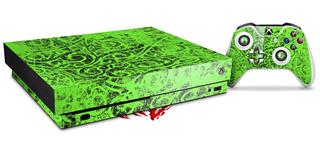 Skin Wrap for XBOX One X Console and Controller Folder Doodles Neon Green