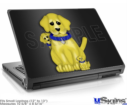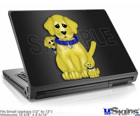 Laptop Skin (Small) - Puppy Dogs on Black