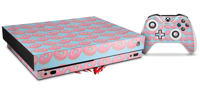 Skin Wrap for XBOX One X Console and Controller Donuts Blue